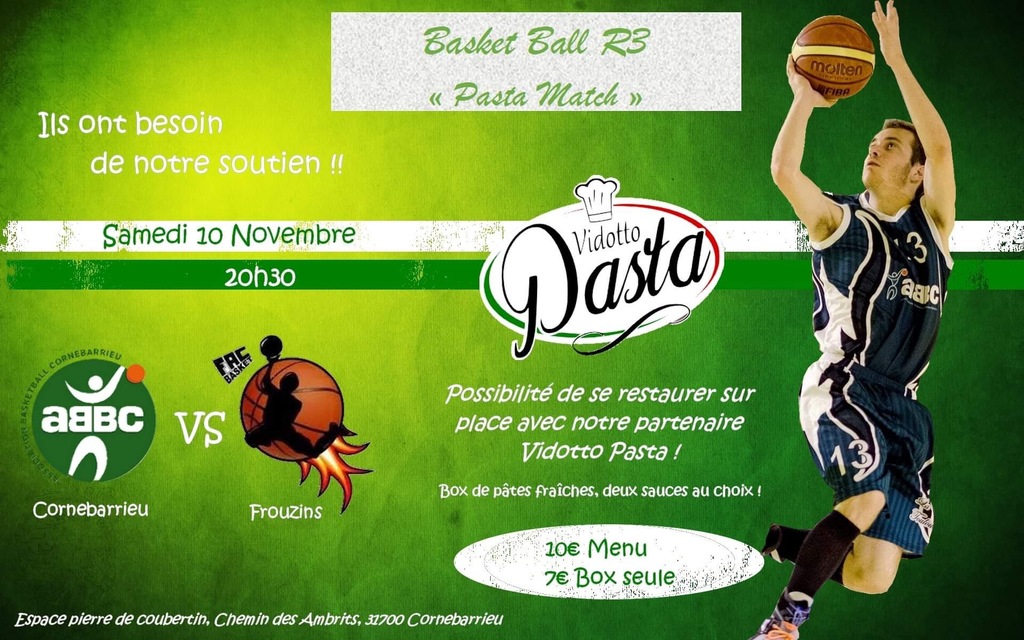 Lors de ce match, vous pourrez déguster les excellentes pâtes fraiches de notre partenaire "Vidotto Pasta" dès 19h