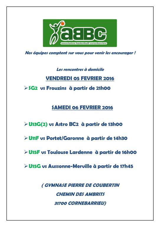 WEEK END DU 05/02/2016: LES MATCHES A DOMICILE